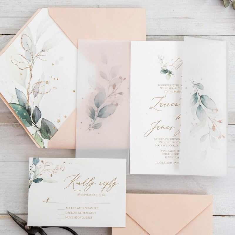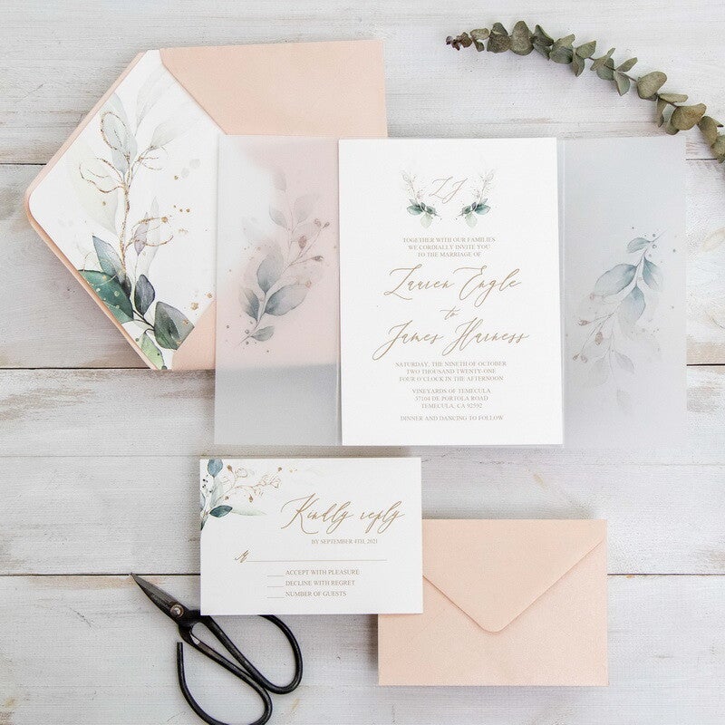 Invitation Mariage Élégante Eucalyptus avec Pochette Calque