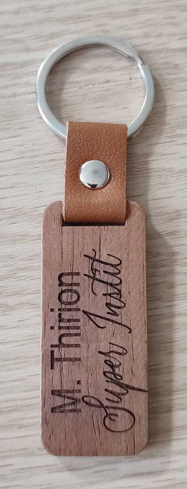Nos porte-clés personnalisés en bois et cuir, gravés avec le nom de l'enseignant, sont le cadeau idéal pour montrer votre reconnaissance avec élégance. C'est un souvenir qu'il gardera longtemps !