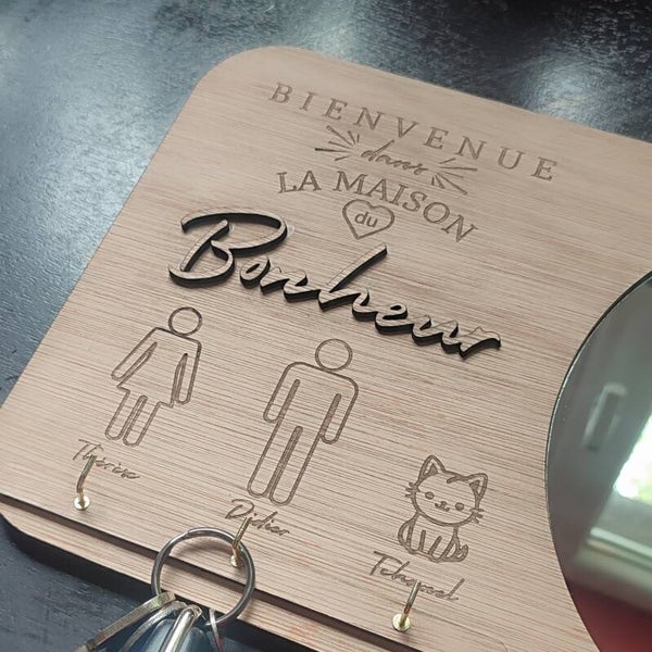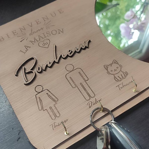 Ajoutez une touche de chaleur unique et de personnalisation à votre entrée ou à n'importe quelle pièce avec ce magnifique miroir mural gravé ! Ce n'est pas seulement un miroir, c'est une véritable déclaration d'amour à votre foyer, affichant fièrement la composition unique de votre famille.