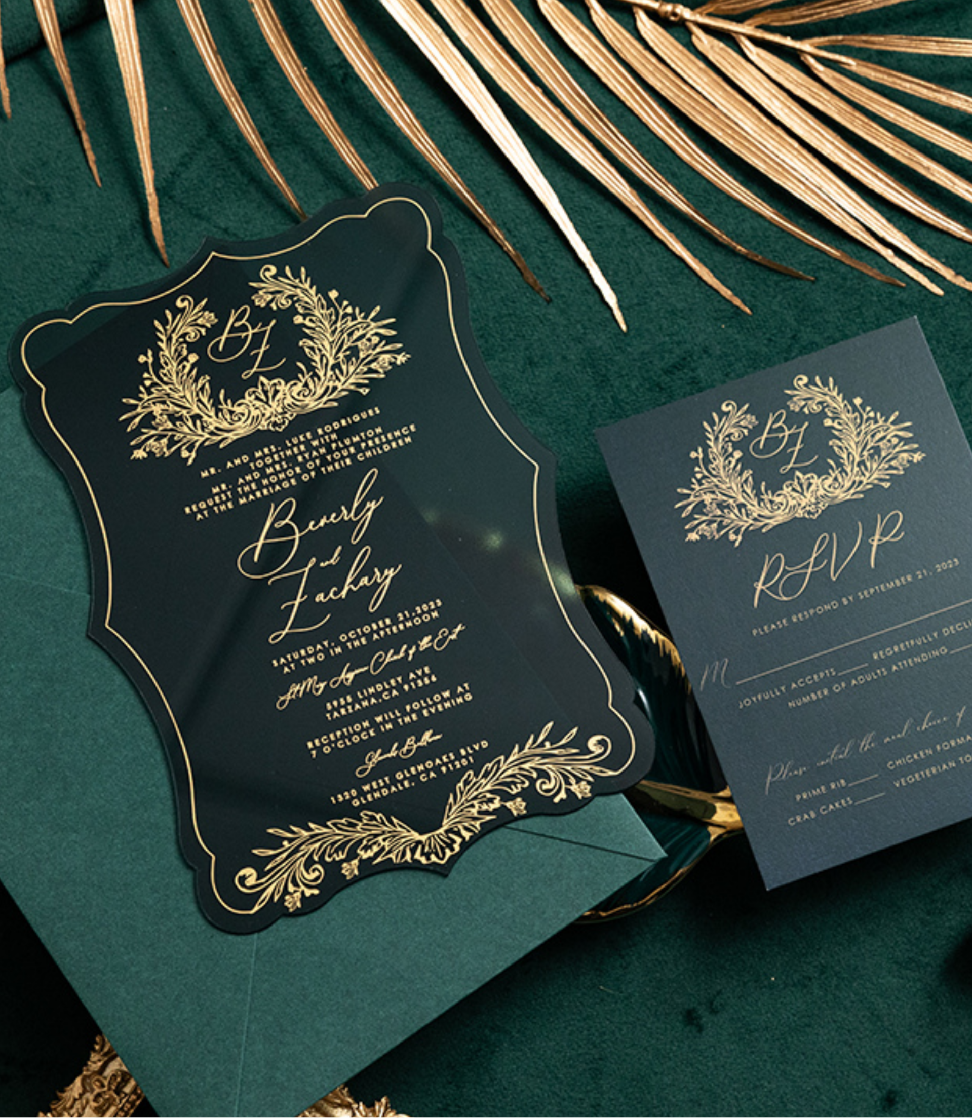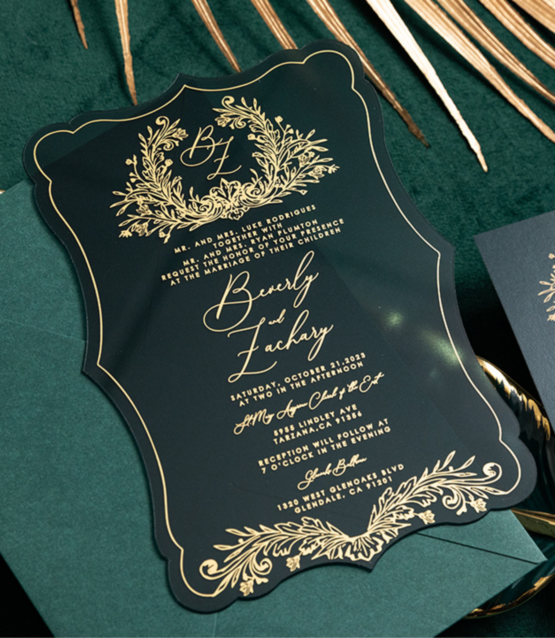 Invitation de Mariage Luxe en Plexiglas Vert et Doré