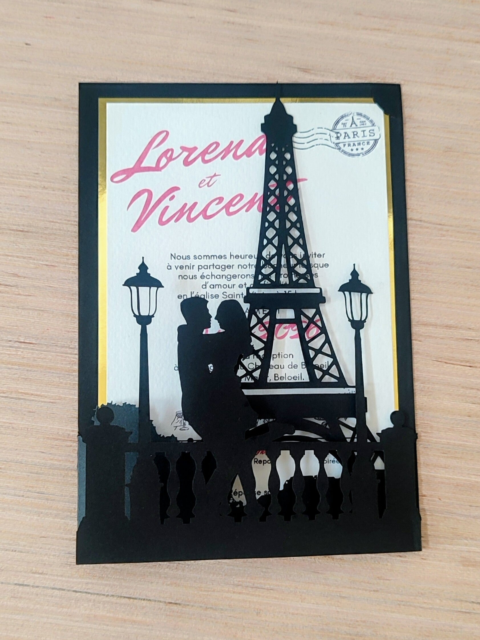Célébrez votre union avec ce faire-part de mariage unique et raffiné, inspiré par la Ville Lumière !