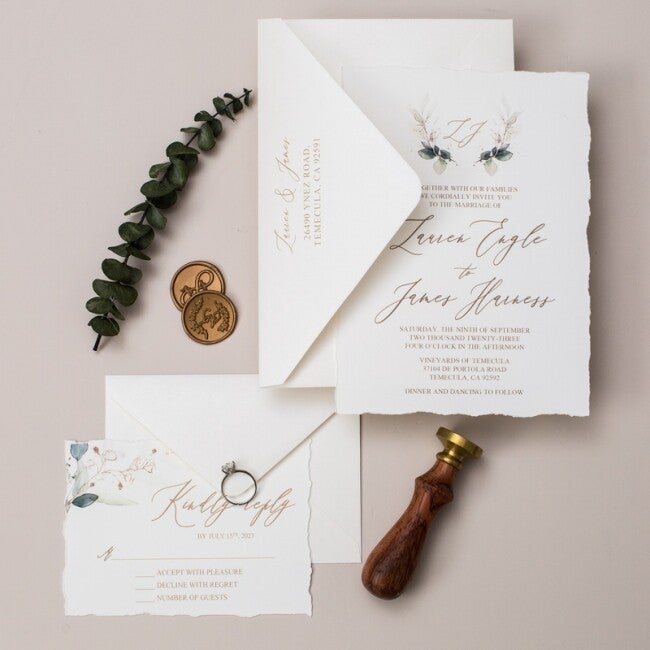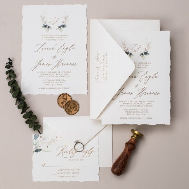 Bords Déchirés à la Main (Deckled Edges) : Chaque faire-part présente des bords effilochés et déchirés artisanalement, ajoutant un charme rustique unique et mettant en valeur l'aspect fait main du produit.