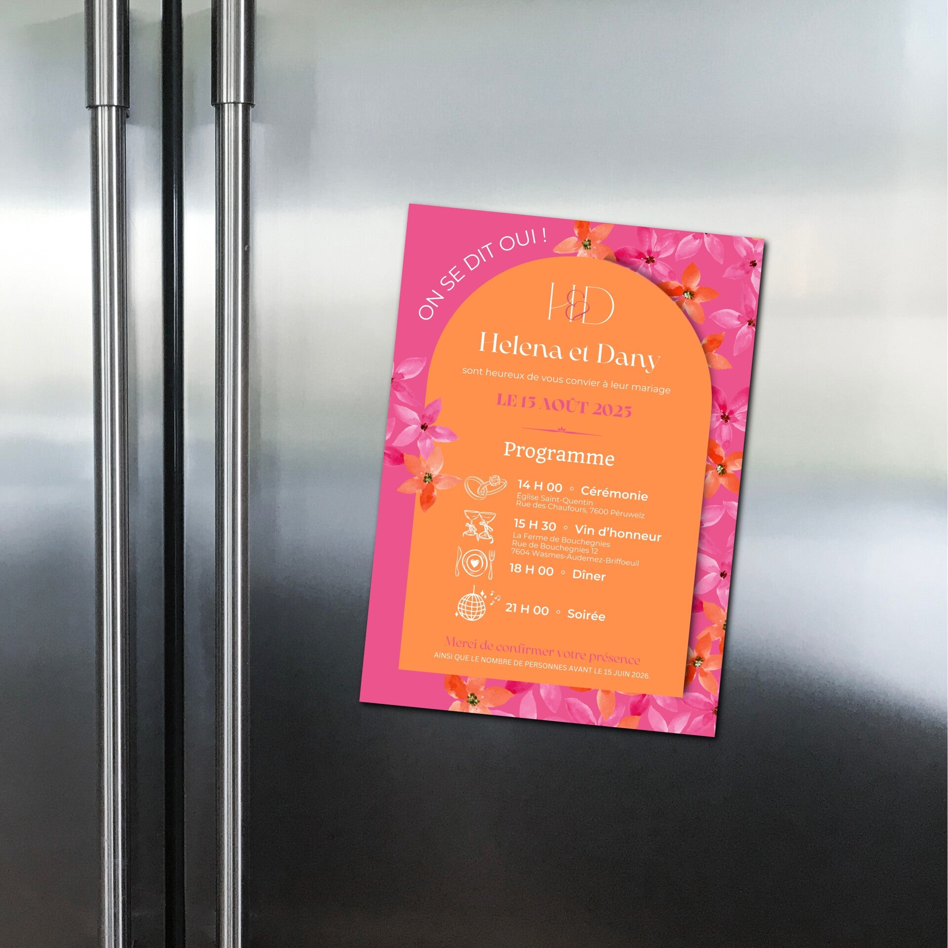 Ne craignez plus que votre faire-part soit oublié dans un tiroir ! Notre faire-part de mariage magnétique et coloré garantit que la date de votre union reste visible.